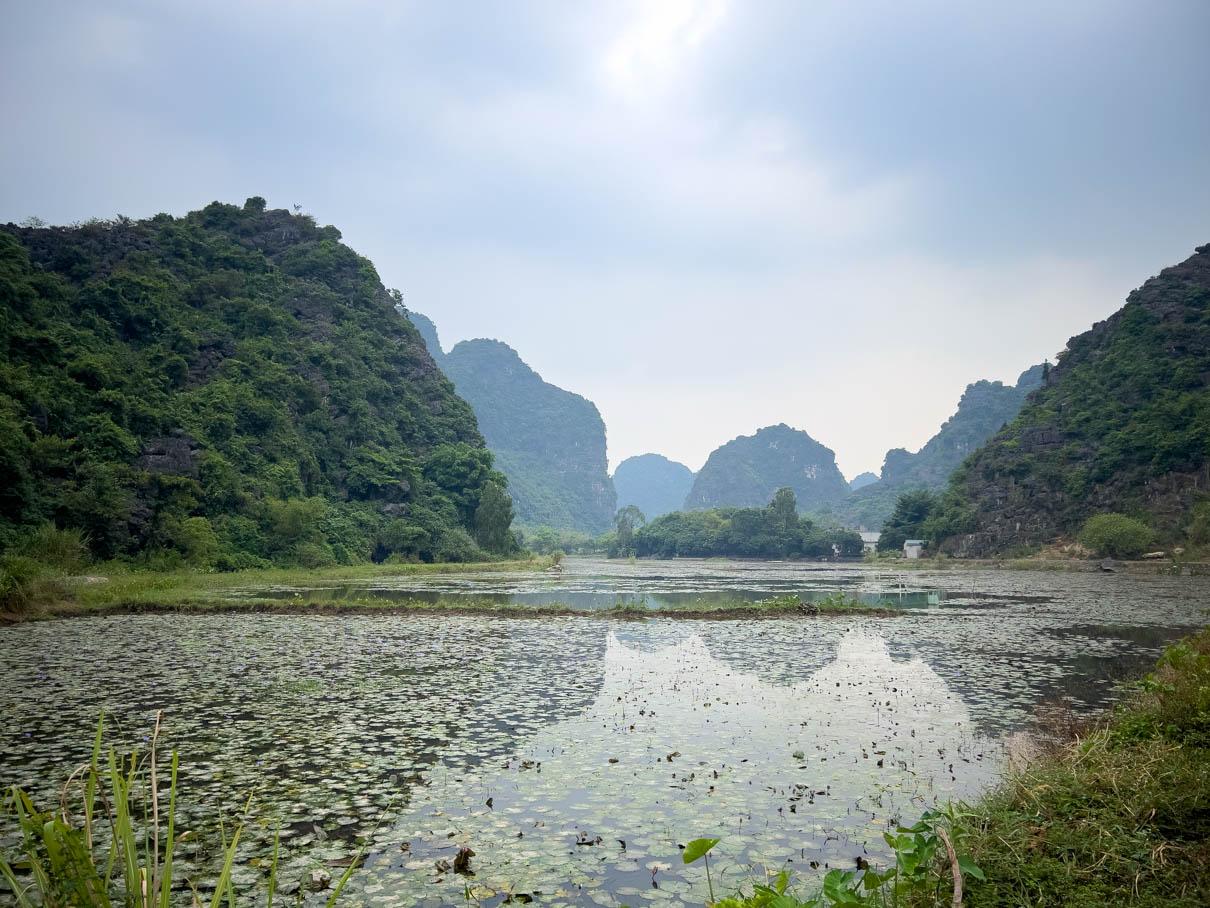 Le ciel caresse l’eau d’un gris argenté, reflétant les montagnes verdoyantes qui veillent sur ce sanctuaire. Un tapis de nénuphars émerge de la surface, créant une mosaïque naturelle. L’air vibre d’un silence paisible, seulement troublé par le murmure lointain du vent. Un paysage où la nature se révèle dans toute sa splendeur, un poème visuel gravé dans le temps.