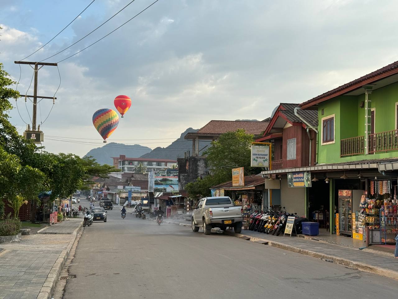 Une rue paisible s’éveille sous le regard flottant de montgolfières colorées, ballons captifs d’un ciel rêveur. Les façades verdoyantes et ocre murmurent des histoires, tandis que la montagne embrasse l’horizon. Un souffle d’aventure flotte dans l’air, invitant au voyage, à la découverte d’un monde suspendu entre terre et nuages.