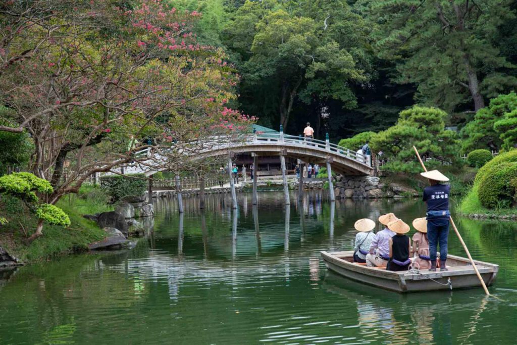 Dans un jardin suspendu entre ciel et terre, un fragile bateau glisse sur les reflets du calme, où les couleurs se mêlent aux murmures des arbres. Le pont, tel un fil d’argent, relie les âmes flânant en contemplation. Les chapeaux de paille, gardiens d’histoires séculaires, bercent des rires, tandis que l’écho des ruisseaux chantent une douce mélodie de paix. Le temps se suspend, et chaque feuille, chaque goutte d’eau, danse en harmonie avec l’éternité.